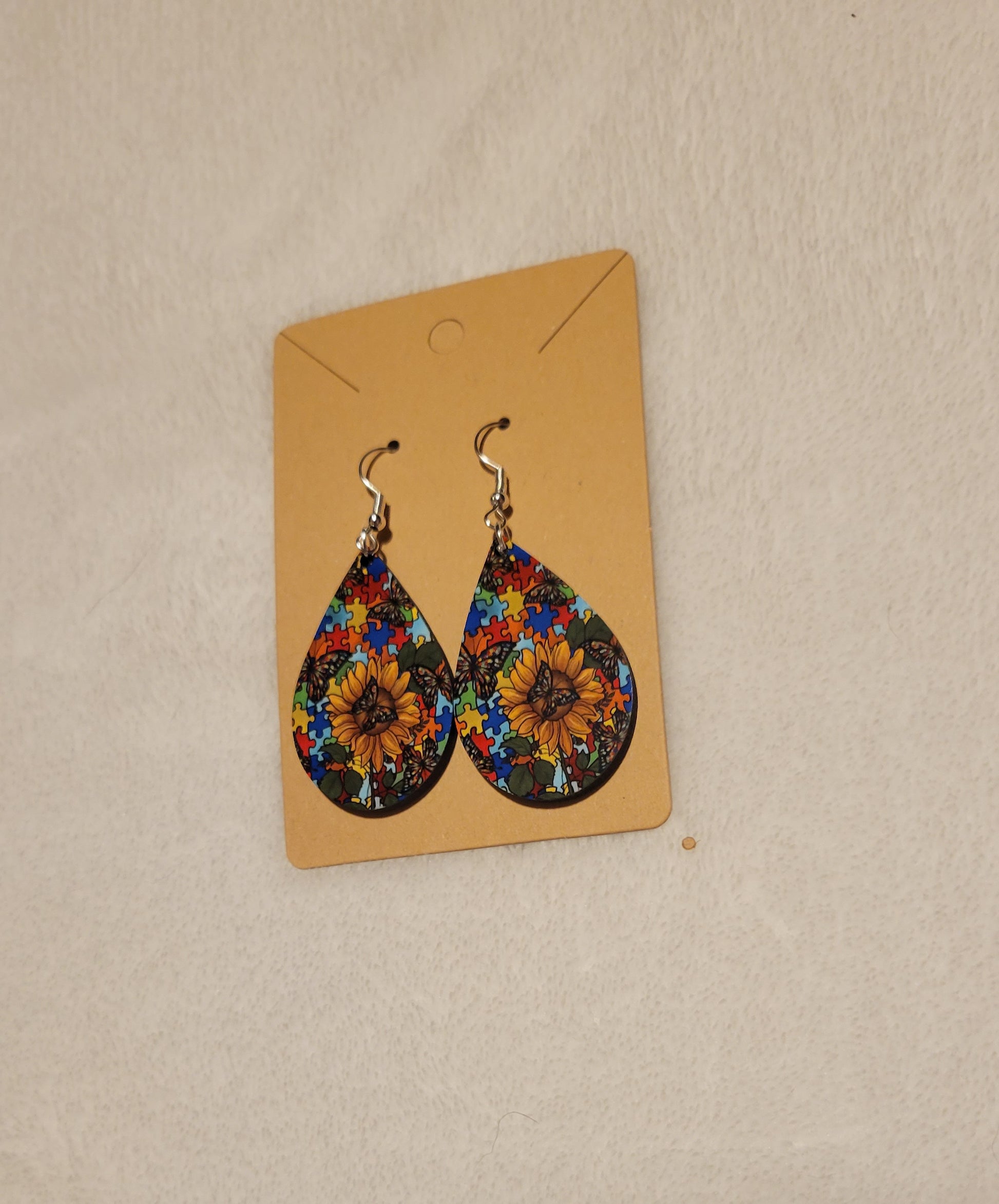Double-sided sublimation printed earrings are made of Medium Density Fiberboard material, bright surface and sturdy hardness.