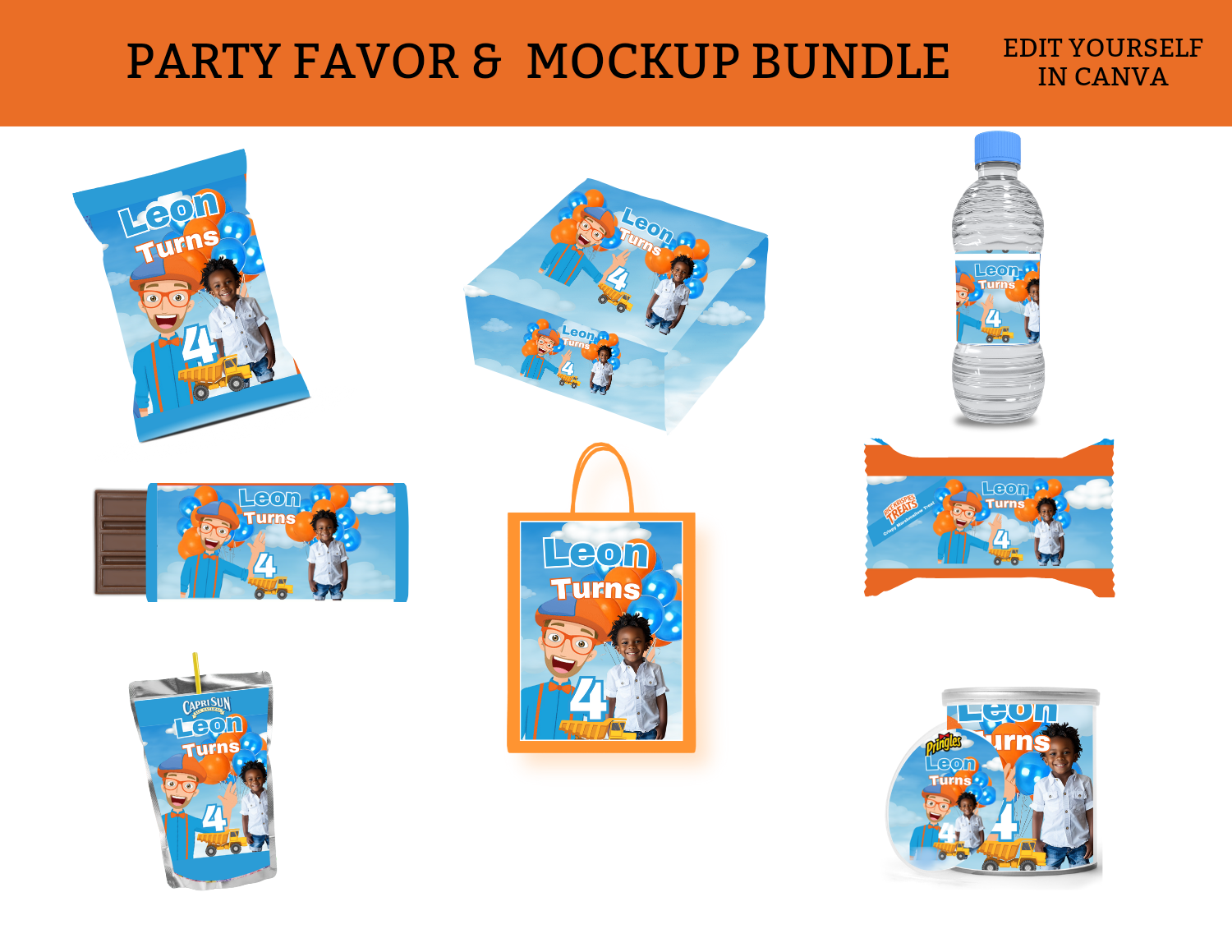 Bring the fun and adventure of Blippi to your party with this customizable favor bundle! Perfect for any young fan of Blippi, these templates allow you to create personalized, creative party favors that will make your event unforgettable.