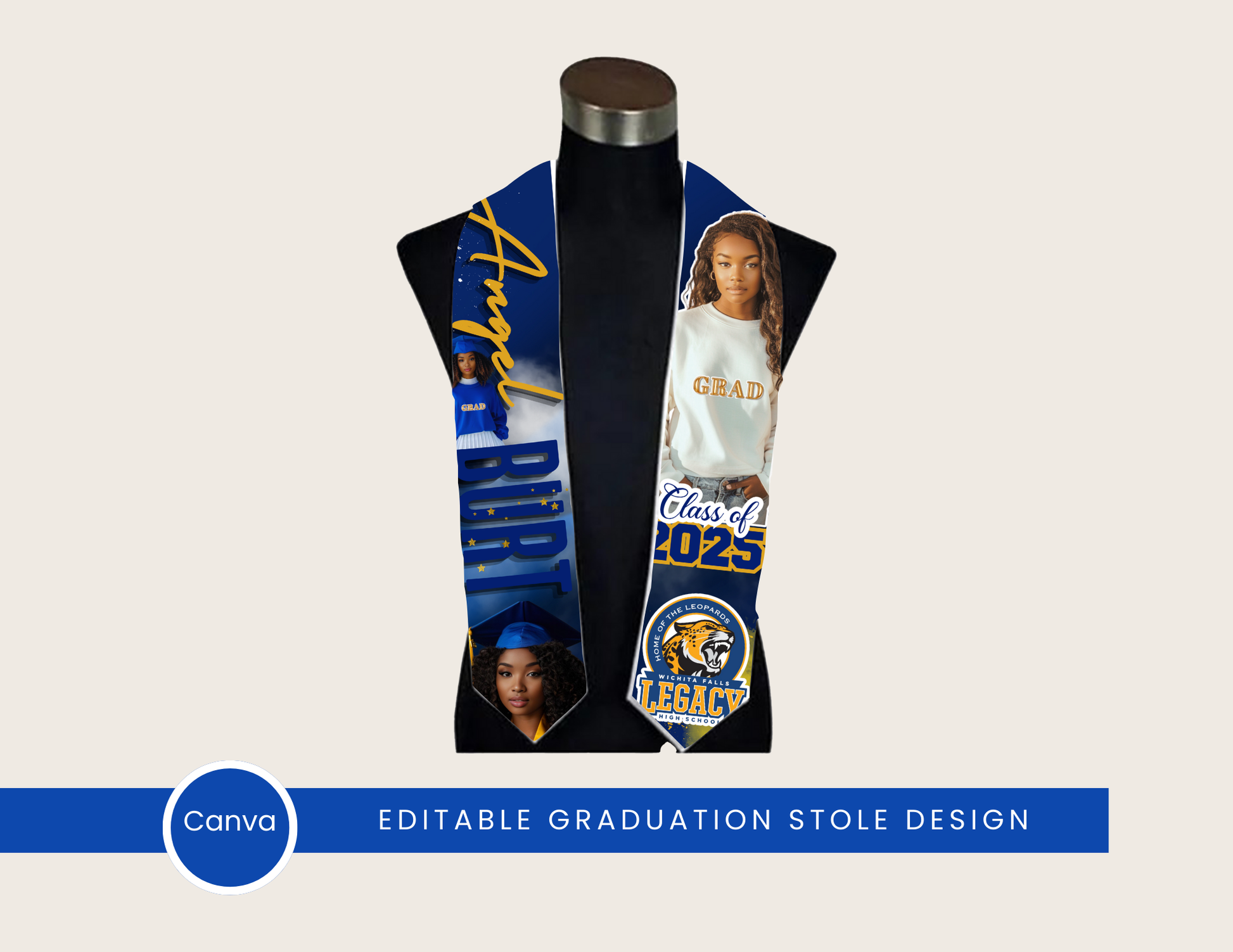 Celebrate your achievements with the Blue & Gold Legacy Graduation Stole, designed for proud graduates who want to honor their journey. This stole features a striking blue and gold theme with space for personalized photos, school logos, and custom text. Perfect for high school and college graduates looking to showcase their school spirit in style!