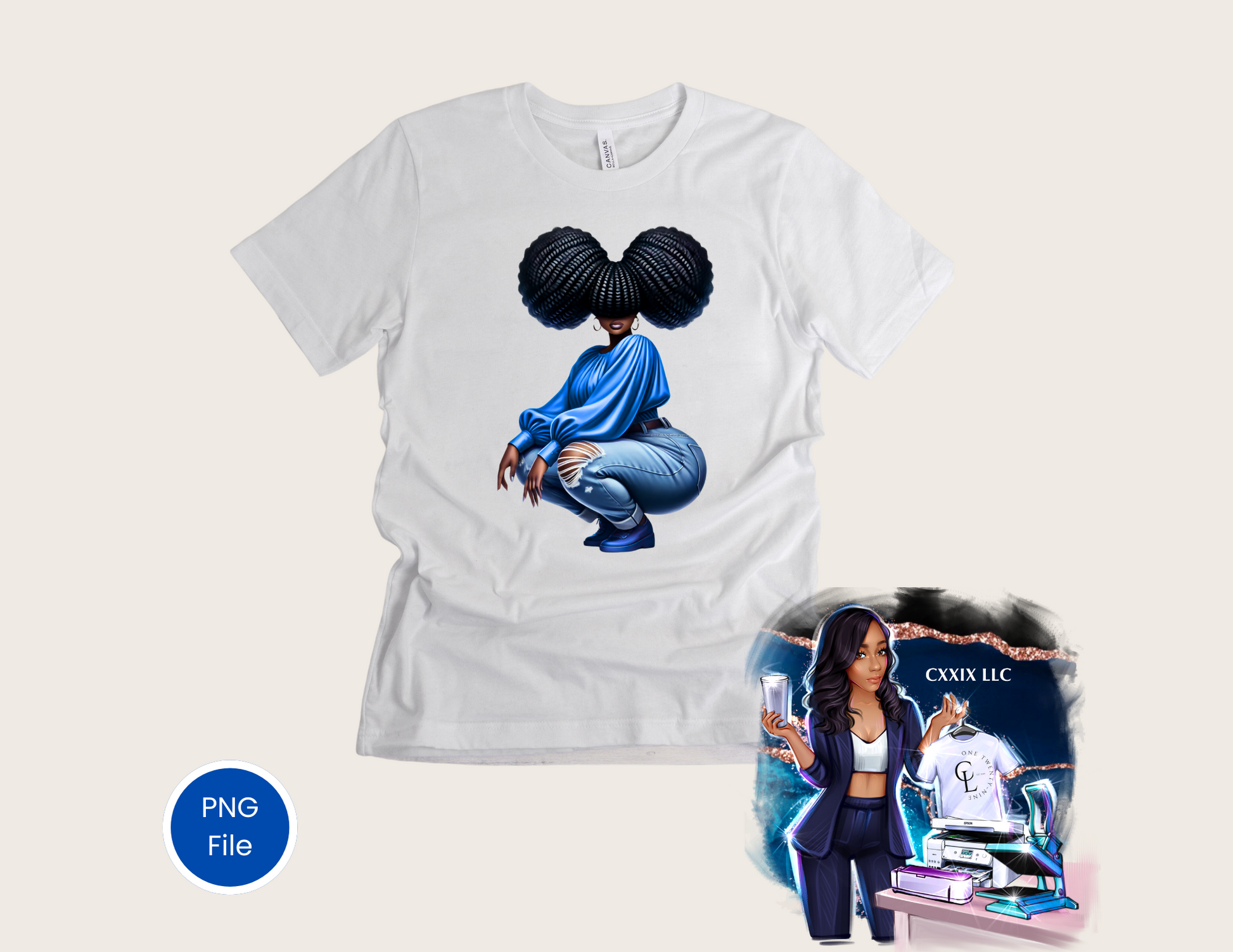 This confident squatting pose is everything. Use on custom shirts, notebooks, or small business branding.