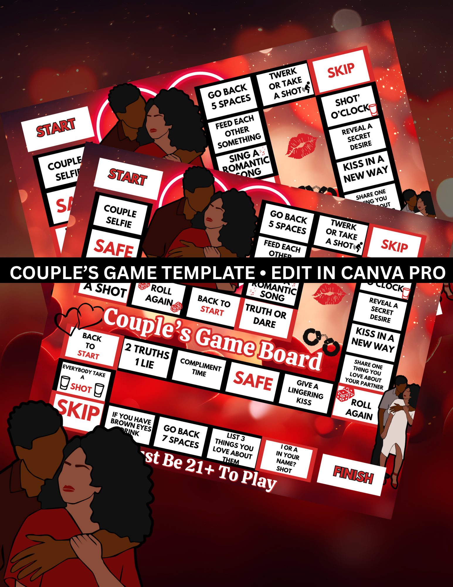 Bring fun and connection to date night with this Couples Game Board Template.