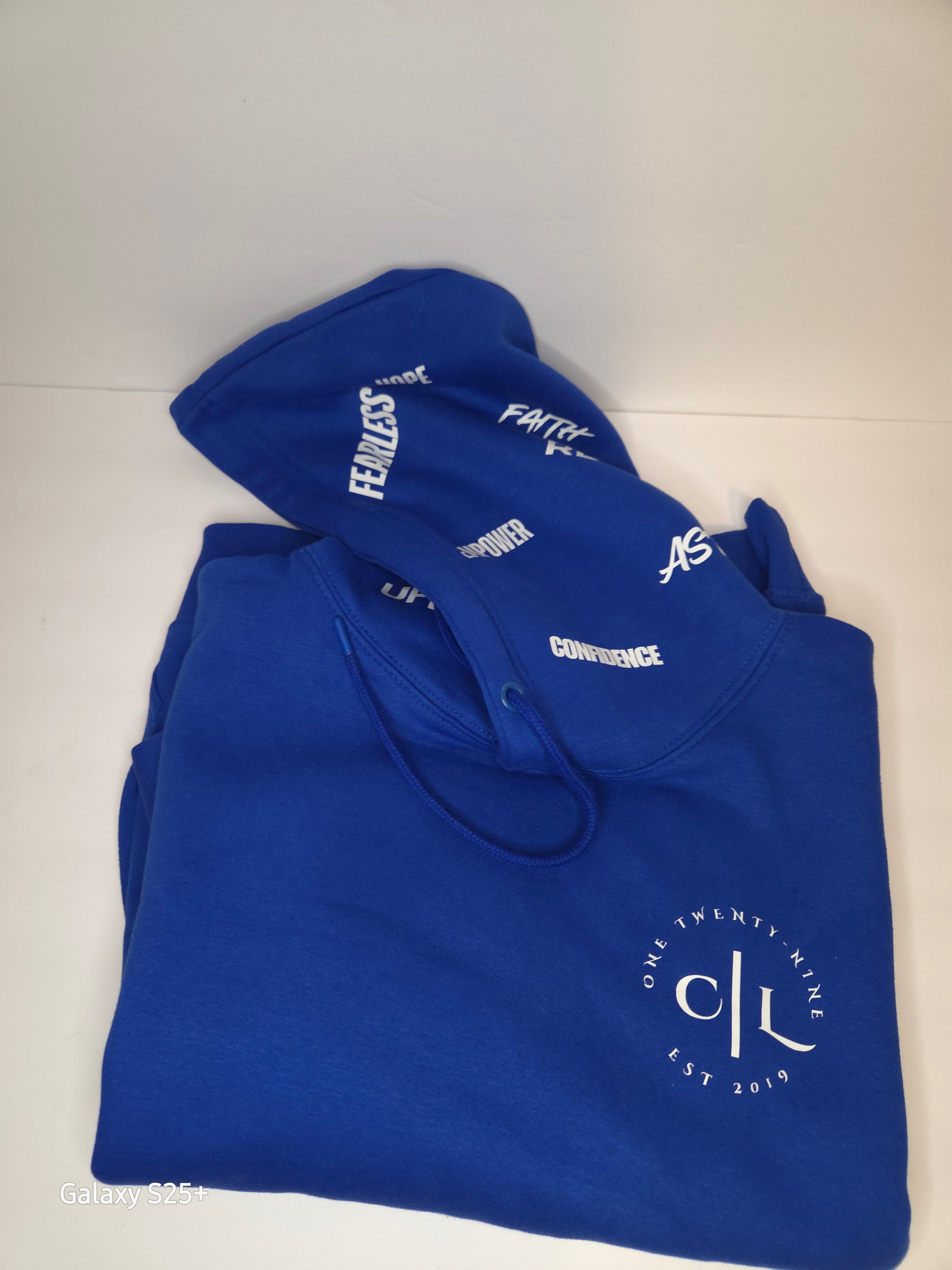 CXXIXLLC Signature Logo Hoodie – Small Front Logo | Black & Royal Blue