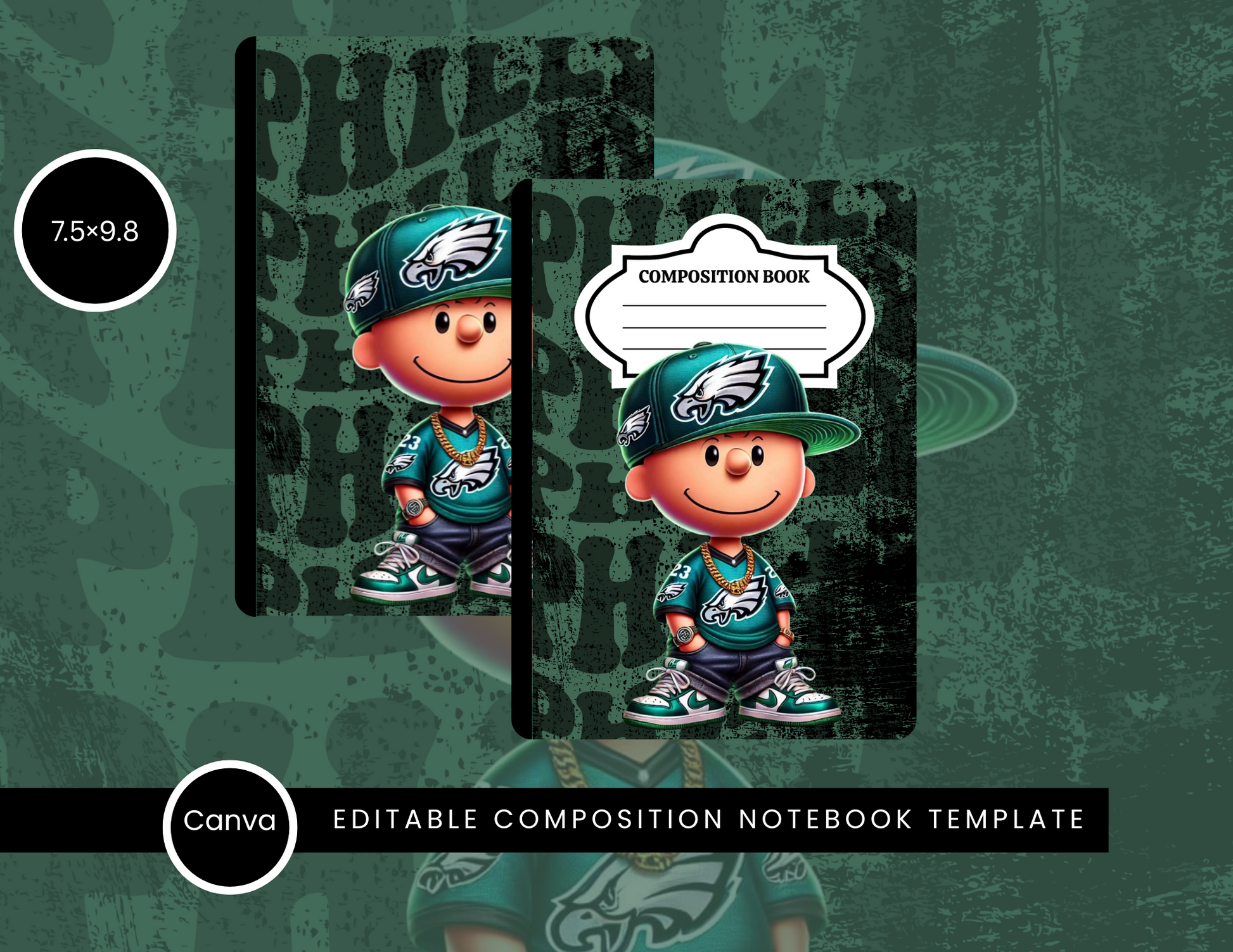Let your little Eagles fan head back to school with style! This Philadelphia Eagles inspired composition notebook cover template is perfect for creating a fun and personalized notebook for your child or for custom orders if you're a crafter or DIYer.