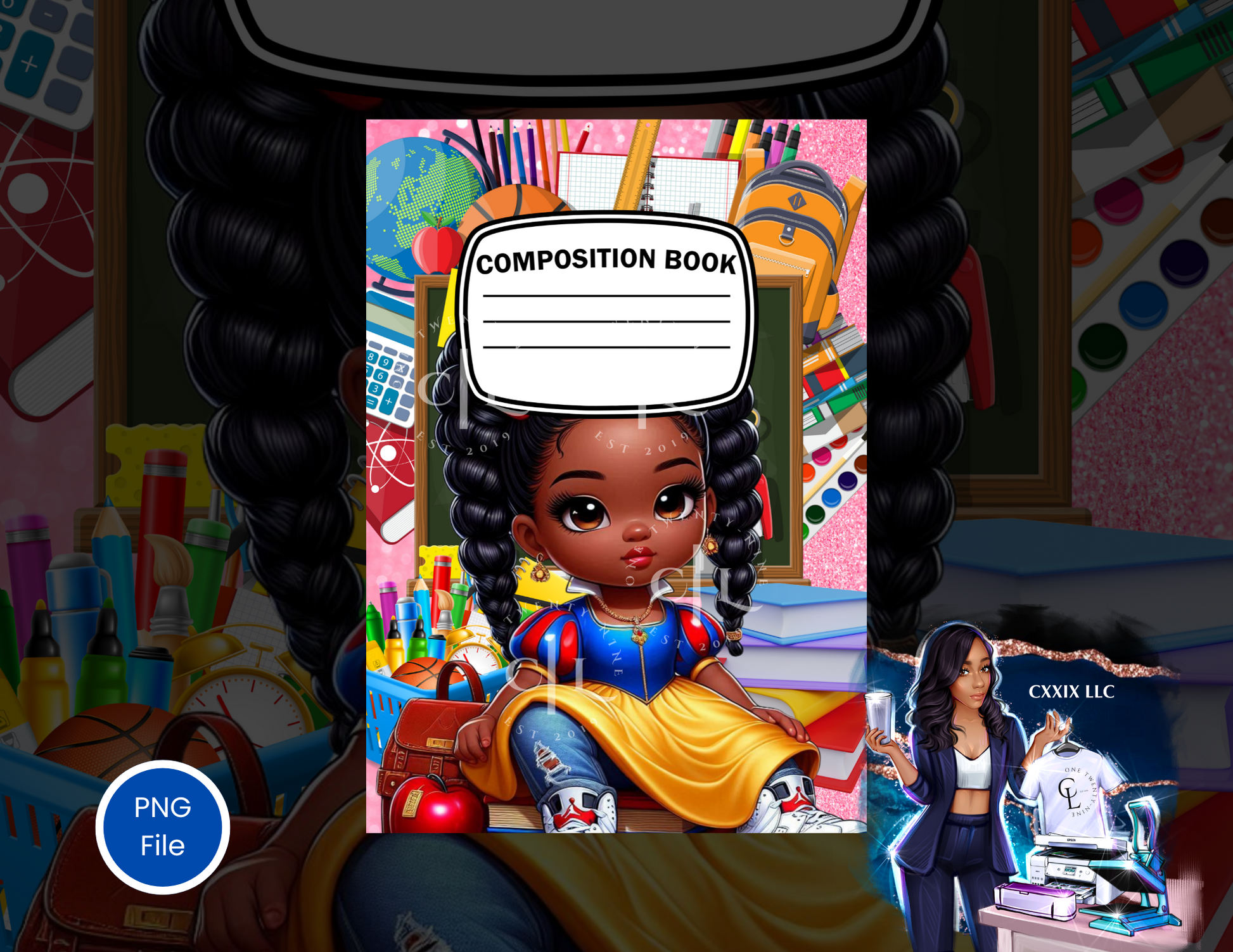This printable cover features a Black girl dressed like royalty, perfect for journals, planners, or composition books.