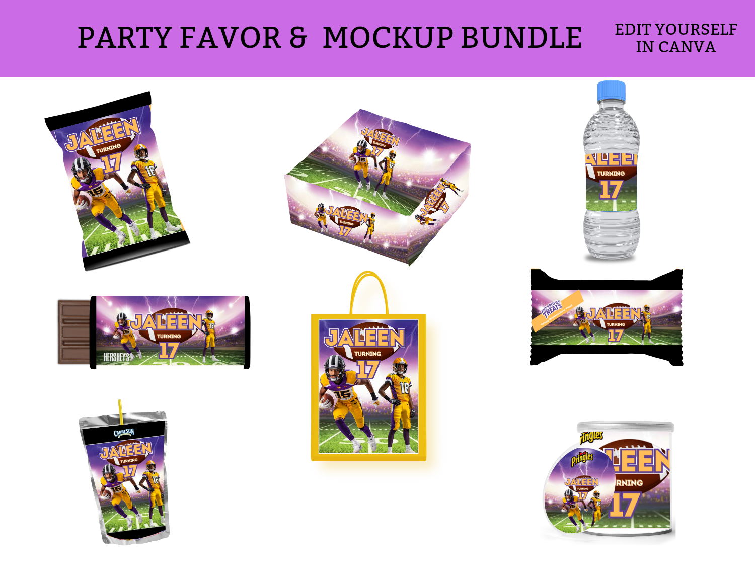 Get ready for a touchdown of fun with the Football 8-Template Party Favor Bundle! With customizable templates and dynamic football designs, this bundle will add energy, excitement, and a winning touch to your celebration.