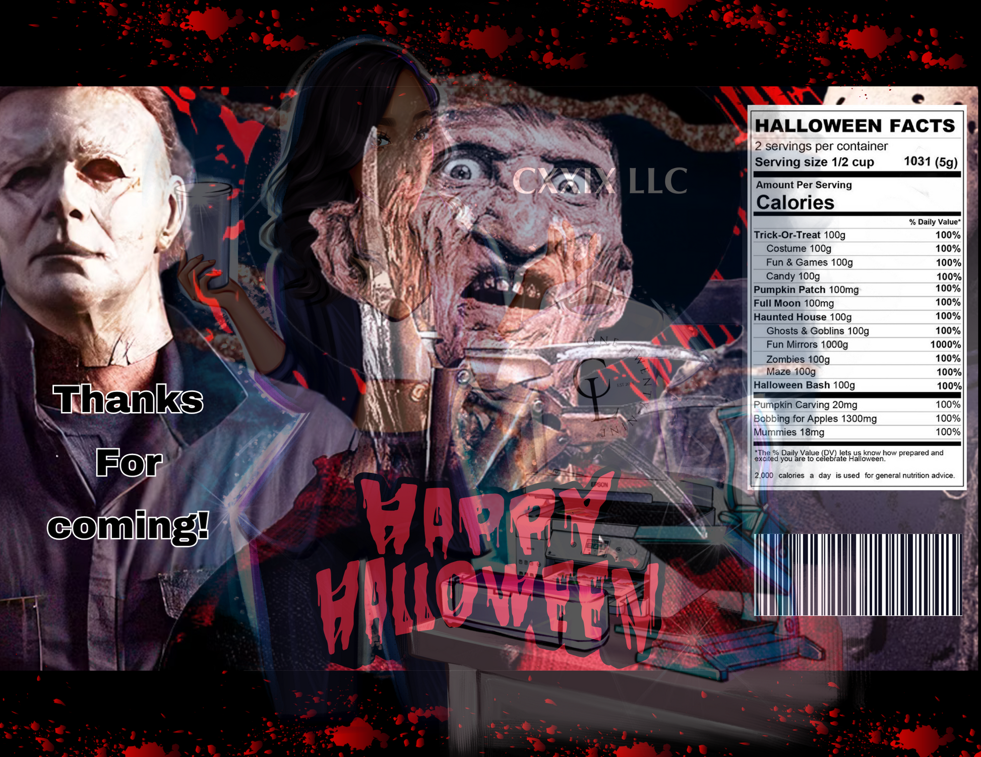 Bring some killer vibes 🔪 to your next event with this Freddy Kruger, Michael Myers & Jason Chip Bag PNG! Perfect for Halloween parties, horror-themed events, or just for fans of the classics who want a unique snack bag design. This spooky and bold digital file is ready to use — no editing required.