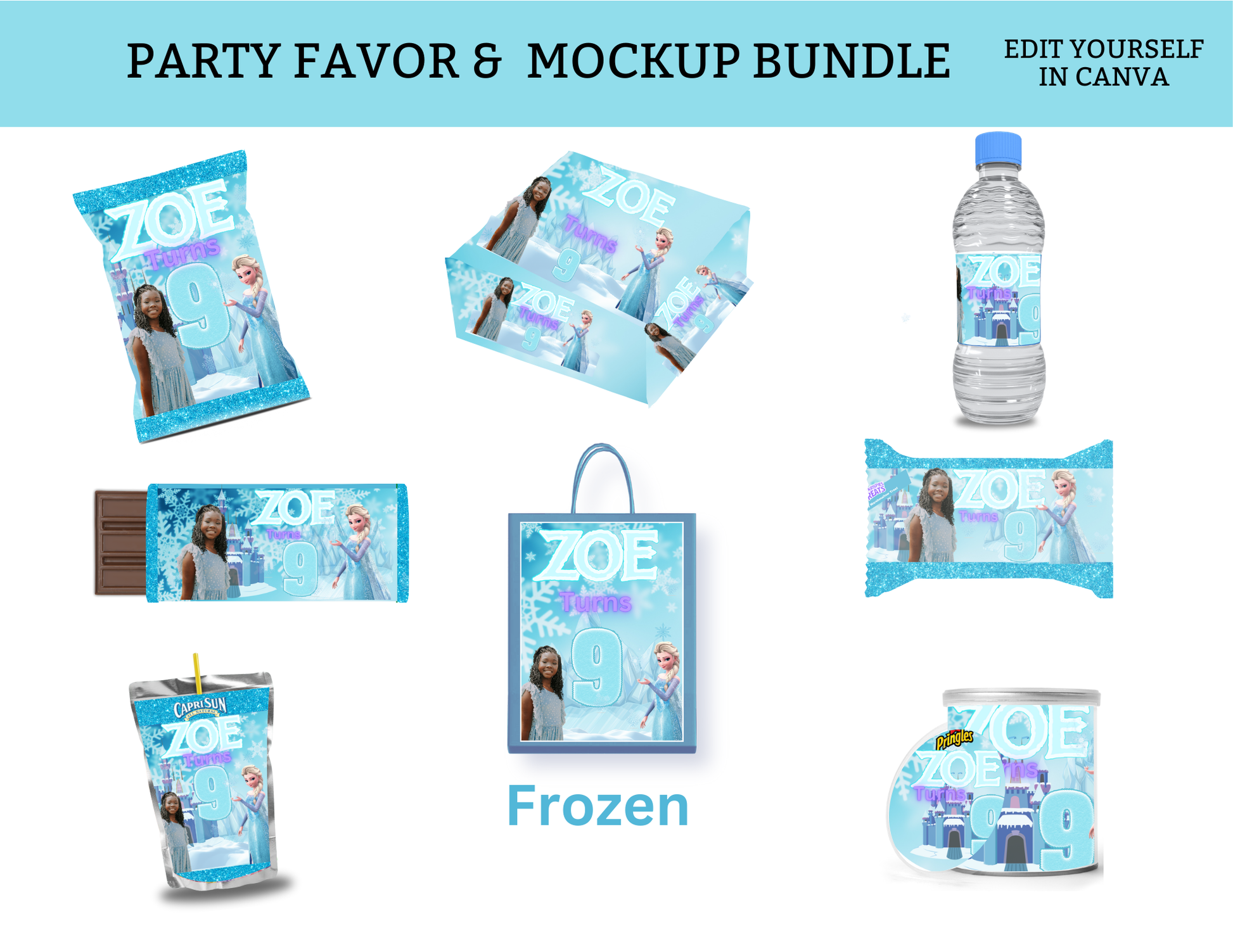 Let it go and dive into the magic of Frozen with the Frozen 8-Template Party Favor Bundle! With customizable templates and enchanting designs, this bundle will create unforgettable memories for your little princess or Frozen fan.