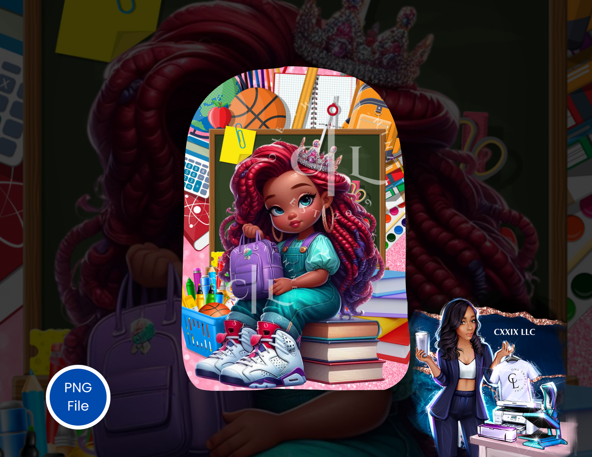 She’s bold, beautiful, and backpack ready! This PNG is great for creating vibrant, empowering school gear for girls.