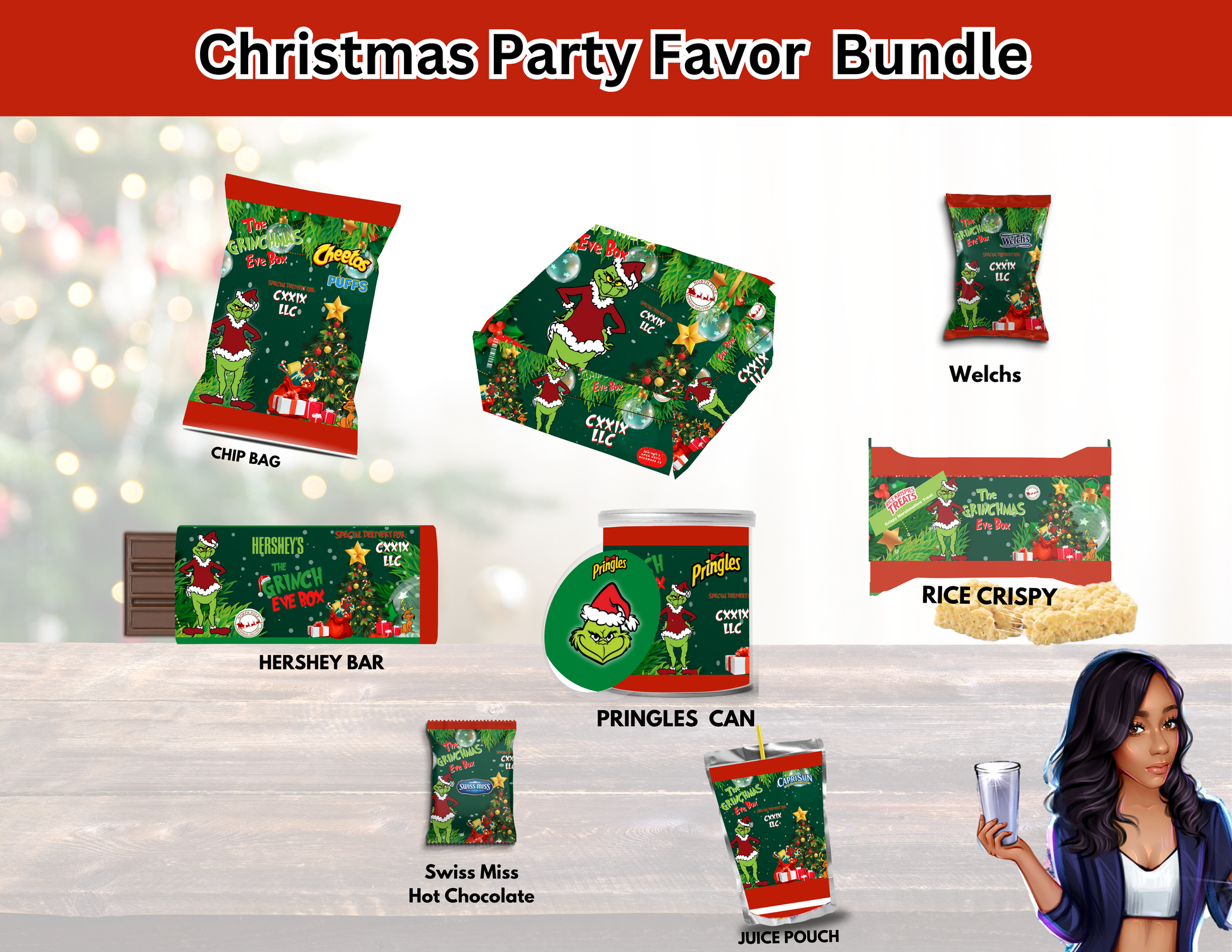 Make your Grinch-themed party stand out with this 11-piece editable Canva party favor bundle! Everything is fully customizable — just edit, download, and print. Perfect for birthdays, holiday parties, school events, and anyone who loves that bold Grinch vibe.