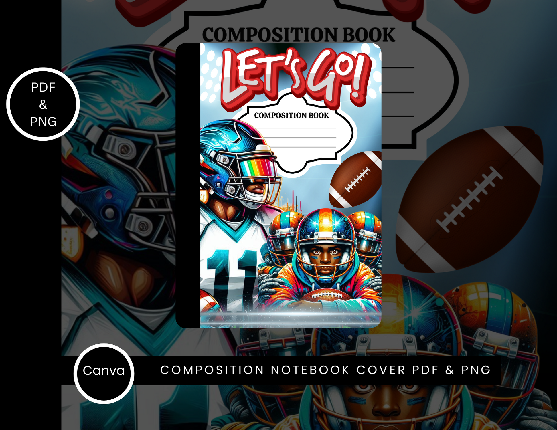 Let’s Go Football – Boy’s Composition Notebook Cover (PNG + PDF)