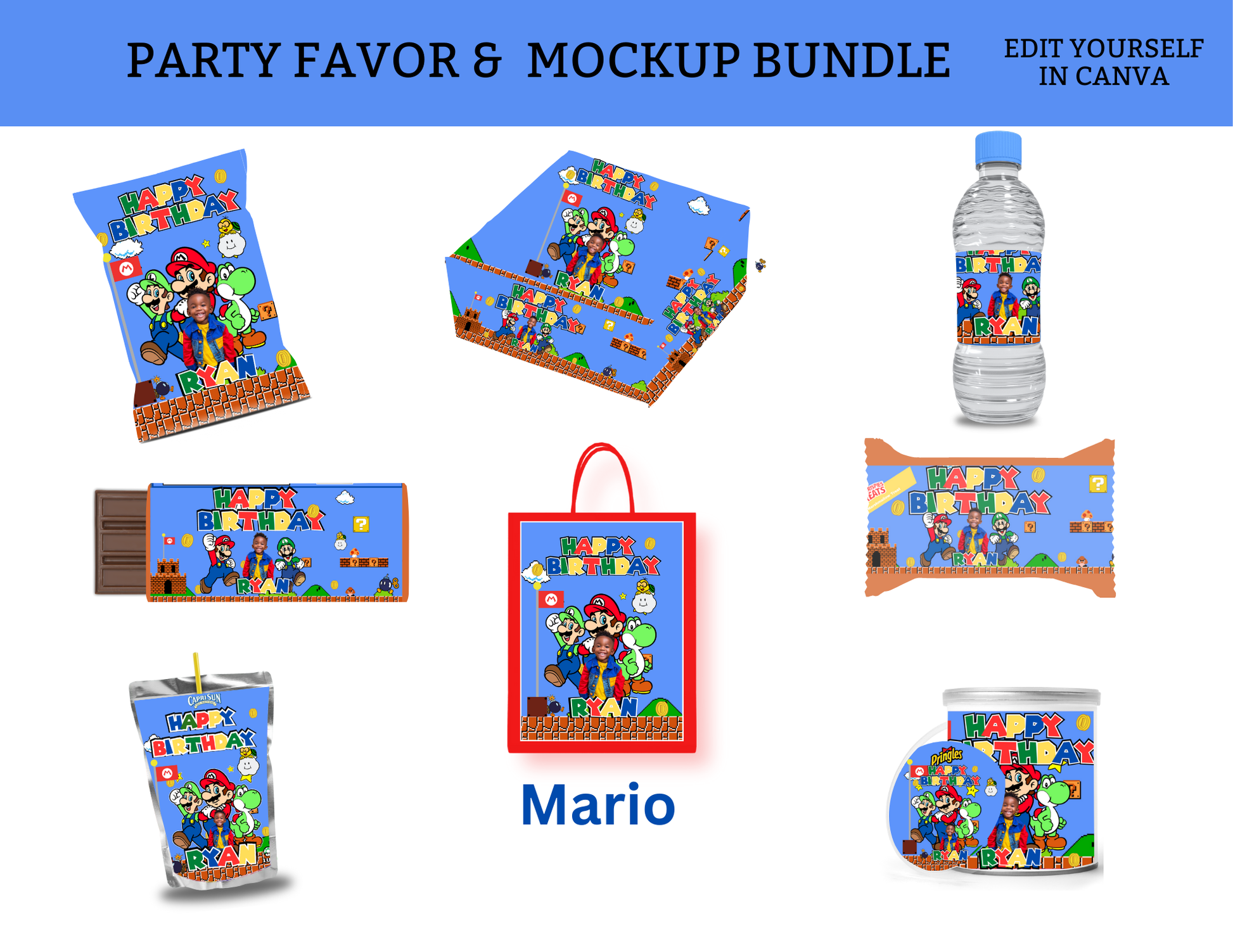 Take your party to the next level with the Mario 8-Template Party Favor Bundle! Featuring colorful designs and iconic characters, these templates will make your celebration feel like a fun adventure straight out of the Mushroom Kingdom.
