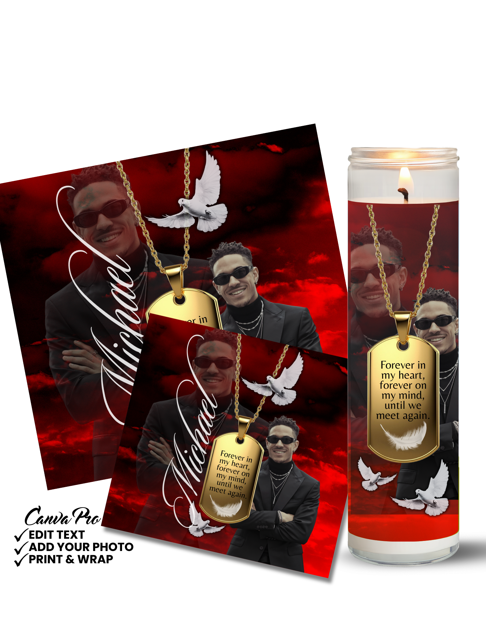 Men’s Memorial Candle Template | Red Editable Canva Design