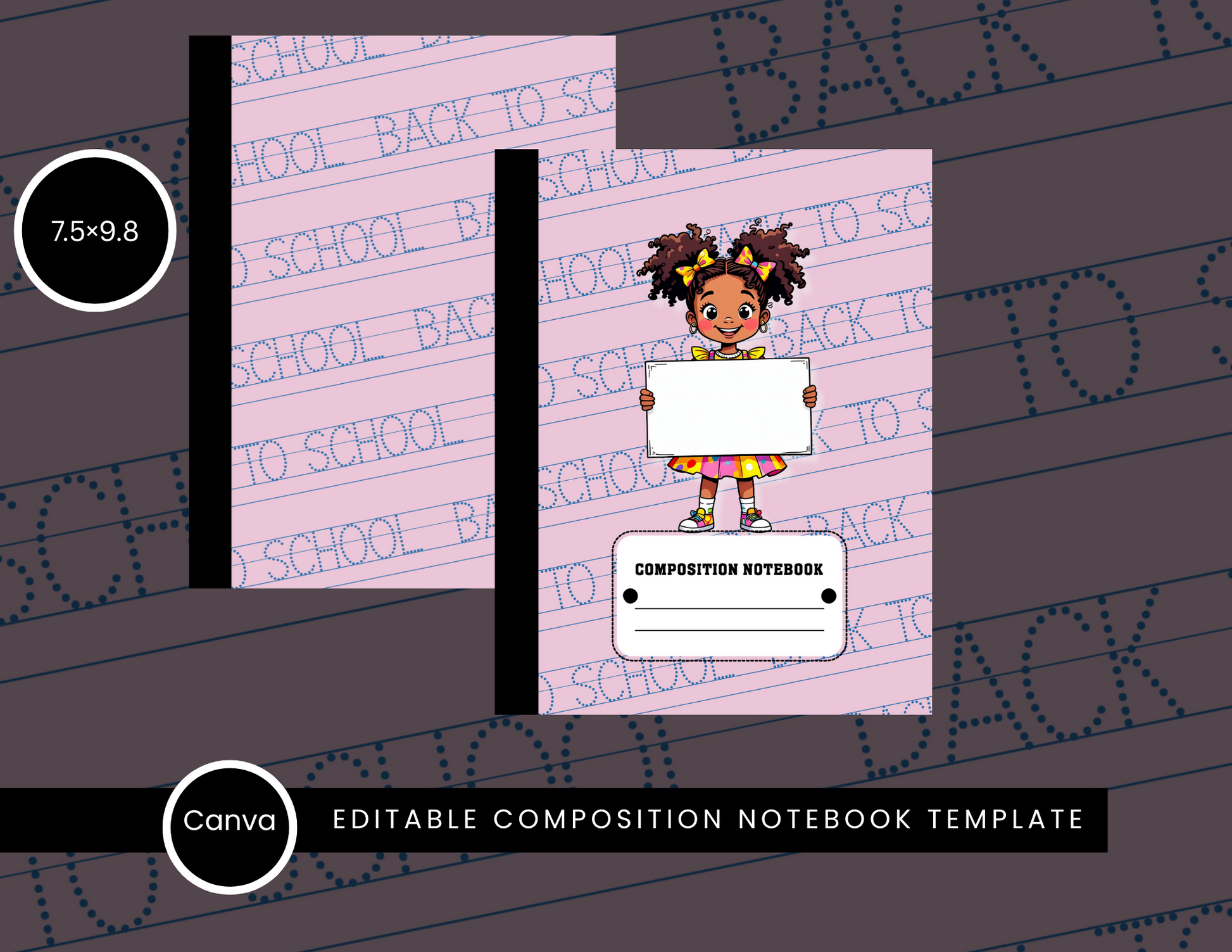 Soft pink with a little girl holding a sign perfect for personalized notebooks or classroom gifts.