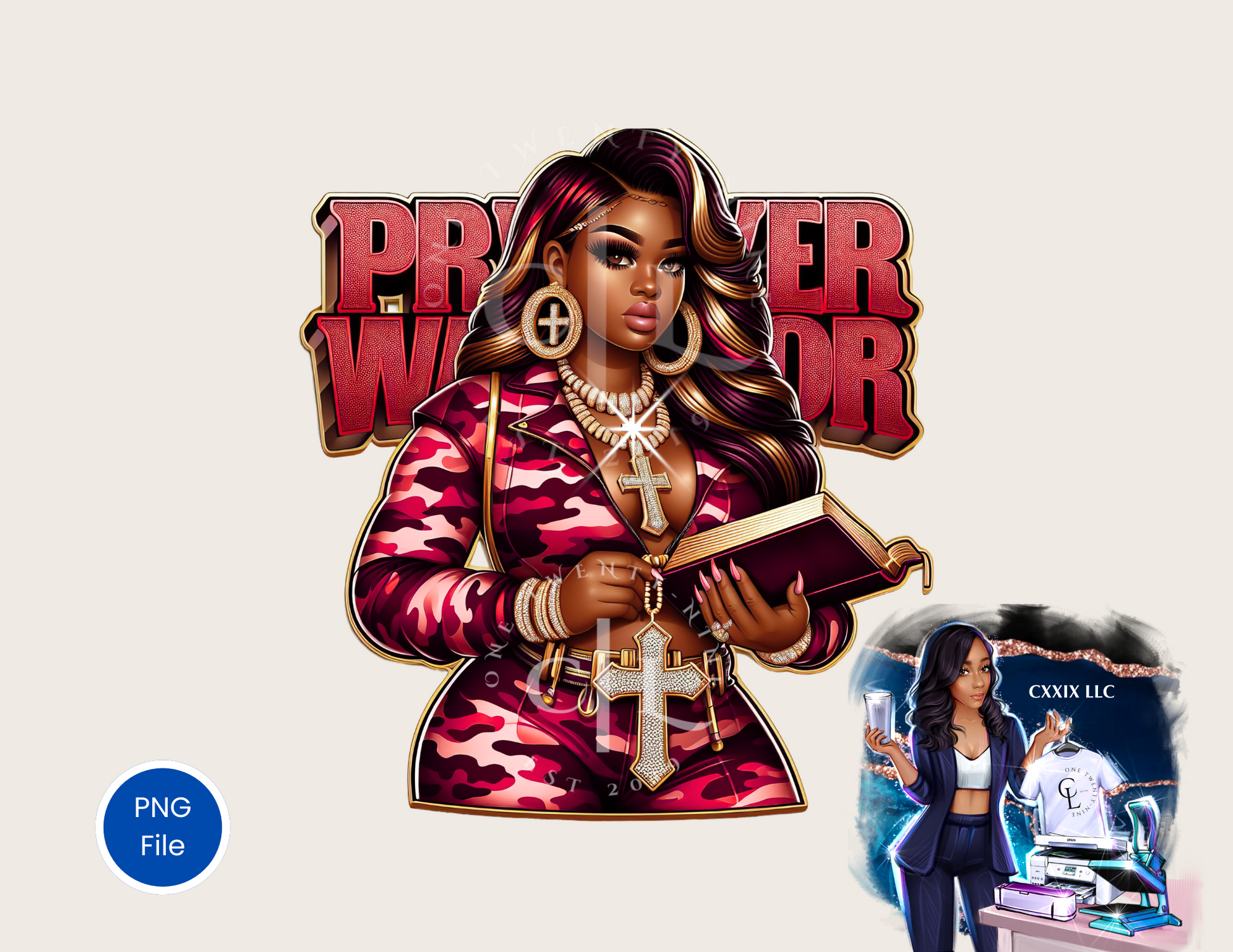 This “Prayer Warrior” graphic features a strong woman of faith holding her Bible, ready for whatever. Great for faith-based brands and spiritual tees.