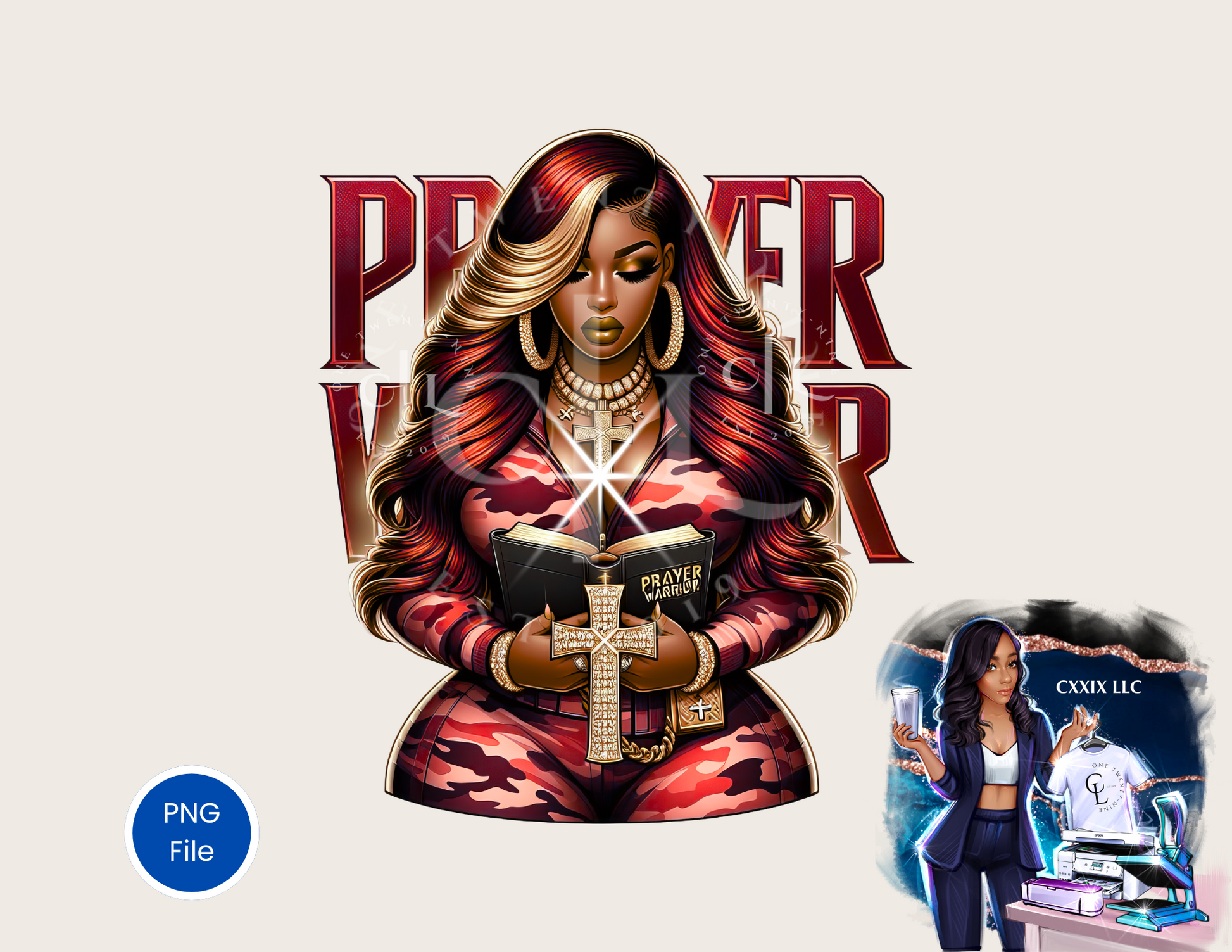 Prayer Warrior – Woman Holding Cross PNG