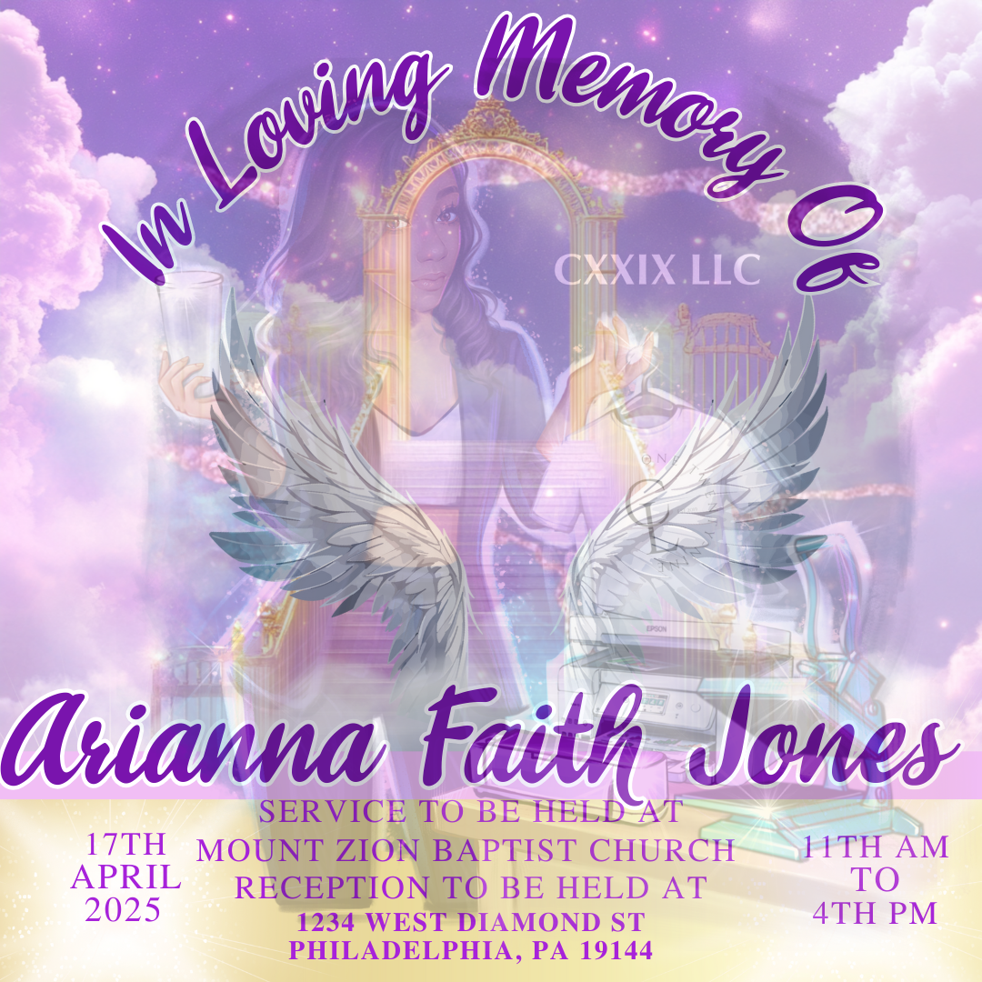 Purple & Gold Funeral Card Template – Canva Pro Required | Digital Download