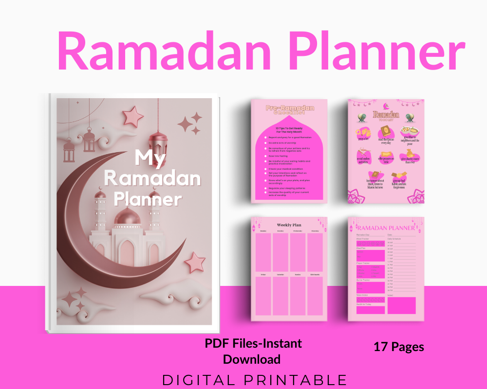 "Stay organized and connected during Ramadan with this 13-page digital planner! Designed to help you track prayers, fasting, meal planning, and reflections, this planner is perfect for both digital use & printing. Whether you're using an iPad or prefer a printed version, this planner will help you stay mindful and organized throughout the holy month."