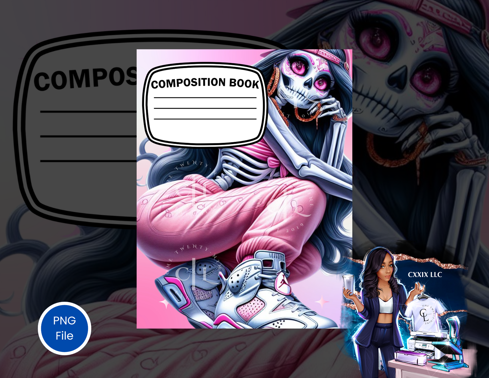 Skull & Sass Notebook Cover PNG – Women’s Edition