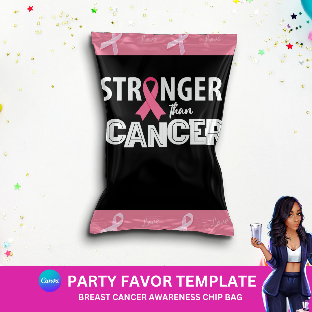Stronger Than Cancer – Editable Breast Cancer Awareness Chip Bag Template