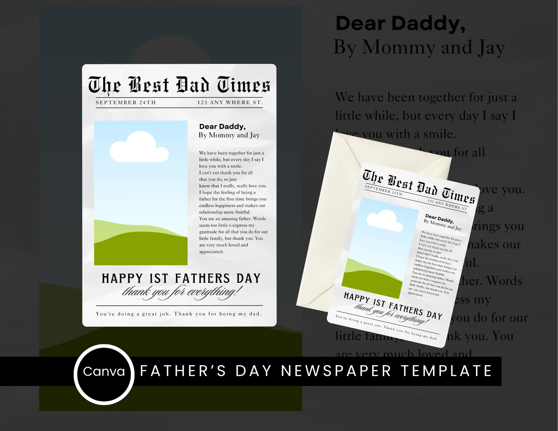 Celebrate Dad like the legend he is with The Best Dad Times – a custom newspaper-style template that highlights his story, his strength, and his humor. Personalize it with your own photos, headlines, and heartfelt messages.